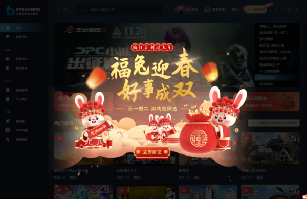 随着新春钟声的响起,我们已经来到了兔年。正所谓新年新气象,我们能在街上看到很多商场、店铺做促销活动;其实在网上也是如此,很多网上店铺,甚至是游戏平台也进行打折活动。今天,财神爷站小编将与大家分享Steambig,介绍一下Steambig兔年贺岁活动。