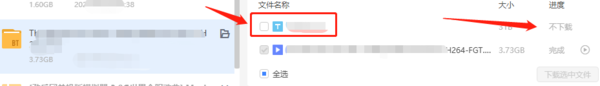 3、若是BT文件,我们将BT任务或任务组的文件列表内,一个或多个始终无法下载的小文件,取消勾选不进行下载;