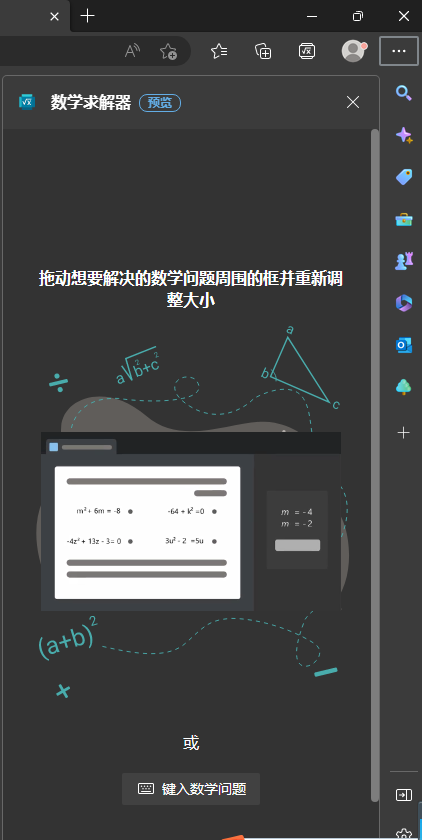 2、之后,在右侧会弹出【数学求解器】的窗口,我们在网页中框选自己要求解的方程式,或者直接【键入数学问题】都可以。