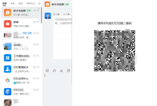 2.?随后会出现弹出的二维码,我们打开手机端的钉钉扫描二维码;