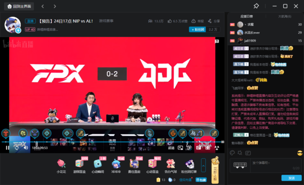 如图所示,我们可以通过拉取进度条,来查看比赛中拿龙、一血、团灭、连杀等精彩片段,进度条中都有明确的标注;我们可以在右侧聊天室参与弹幕互动,为我们喜欢的队伍加油喝彩。