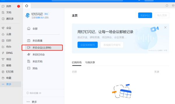 3、在界面中找到【来自会议(云录制)】,即可找到刚刚记录下的会议内容并可开始查看了。