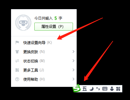 1.?我们首先打开【搜狗五笔输入法】,右键点击,在弹出的窗口中点击快速设置向导;