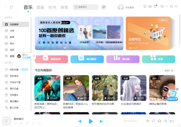 【酷狗音乐】不光可以听音乐,还可以看直播、听书、观赏音乐mv、刷音乐圈等等,非常有趣。