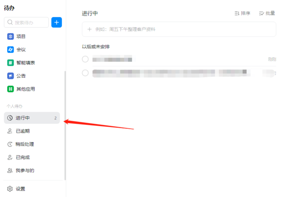 我们进入到【待办】功能选项,点击【进行中】即可查看当前个人待办。