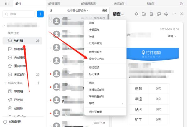 我们在收到邮箱内容时,也可以设置为待办,如图所示,右键对应邮箱可设为待办。