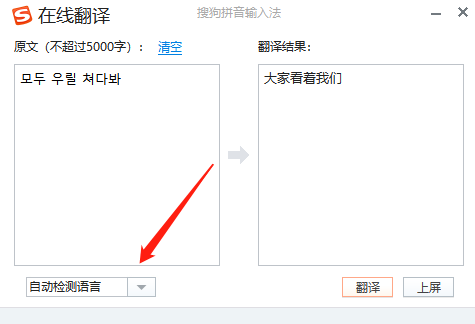 2、之后,会弹出在线翻译器,我们将需要翻译的语句在此转换即可,大家可选择各种转换语言,且不占用窗口资源,随用随开,非常简约方便。