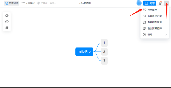 四、最后,绘制完成,脑图会自动保存,我们点击右上角的【...】按钮,点击其中【导出图片】,将脑图导出即可。