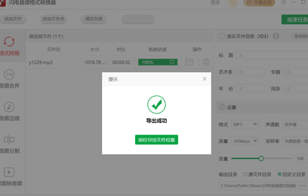 闪电音频格式转换器是一款强大又简单的音频格式转换、处理软件。它集格式转换、音频合并、音频压缩、音频分割、视频转音频于一身,是一款简单好用的音频格式转换软件。