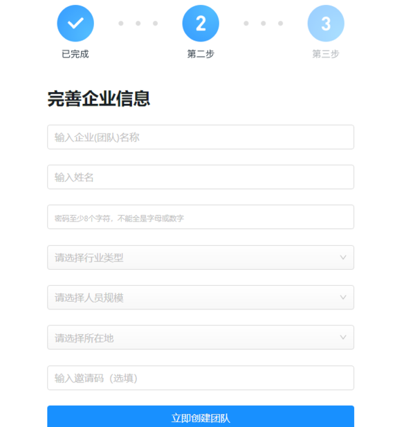 在【钉钉】的主界面中,找到【通讯录】--【创建团队】,跳转页面后,根据提示完善企业信息即可。