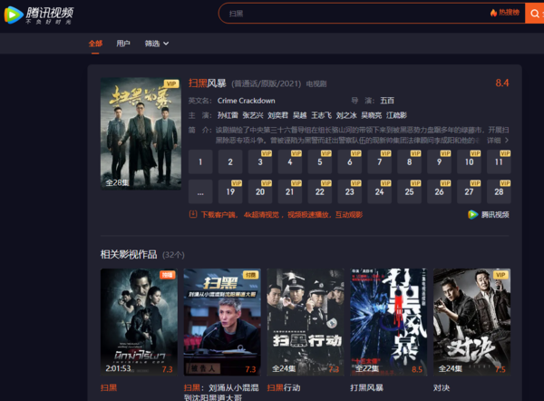 腾讯视频是腾讯官方推出的一款大型视频播放器客户端,为用户提供最新、最热的电影、电视剧、综艺、动漫、体育等视频节目。腾讯视频播放器采用了智能的P2P流媒体播放技术,支持丰富内容的在线点播及电视台直播,提供列表管理、视频音量放大、色彩画质调整、自动关机等等更强大的功能服务。我们同样可以在软件中搜索或查找分类,来寻找自己喜欢的扫黑反腐类影视作品。