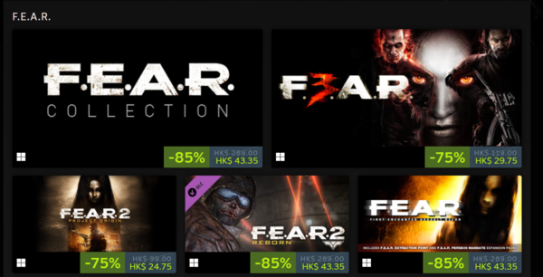◆FEAR3,游戏本体享受1.5折优惠(本次优惠力度最大),其DLC最高也享受1.5折优惠。