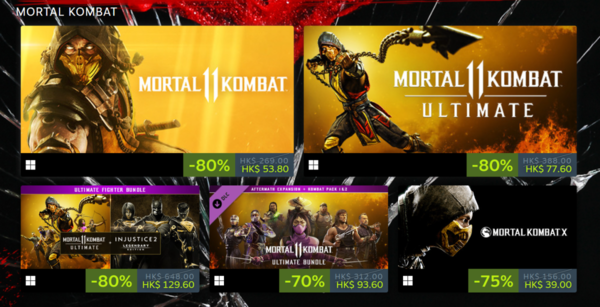 ◆Mortal?Kombat11,游戏本体(标准版、豪华版)享受2折优惠,其DLC最高享受3折优惠。