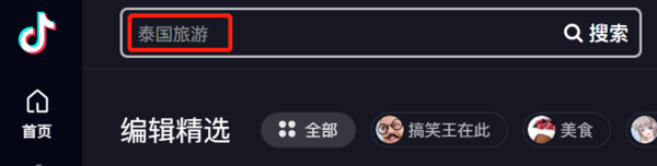 1、打开抖音电脑版,在上方搜索栏内搜索“泰国旅游”。