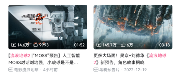 在哔哩哔哩上有电影官方认证宣发账号或其它高质量自媒体上传的超高清预告片,1080P到4K画质的预告片应有尽有,提前一睹电影风采,就来哔哩哔哩电脑版吧~