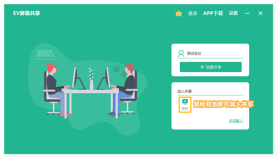 双击【加入共享】下的共享设备即可自动加入屏幕共享