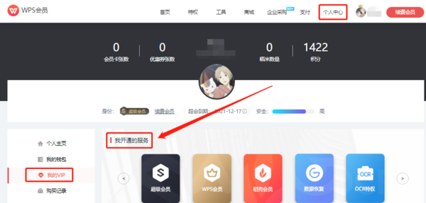第一步:打开浏览器,登录WPS会员中心,会员中心地址:https://vip.wps.cn