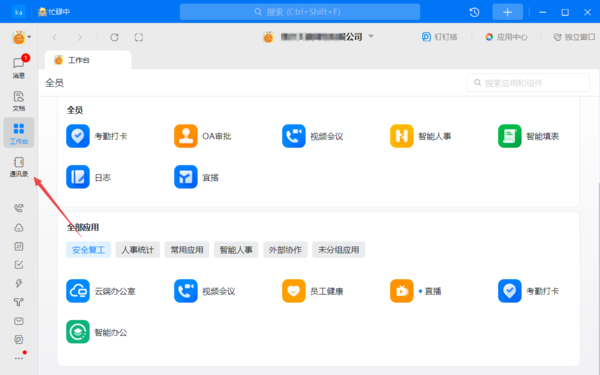 ①首先,启动电脑端的钉钉,点击左侧列表中的【通讯录】功能。