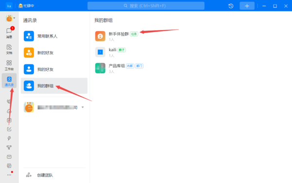 ①首先,打开【通讯录】右侧的【我的群组】选项,然后选择想要拉人的群组。