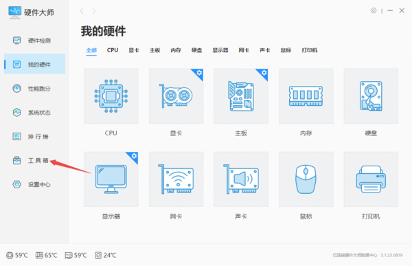 ②然后在硬件大师界面中,点击左侧的【工具箱】选项。