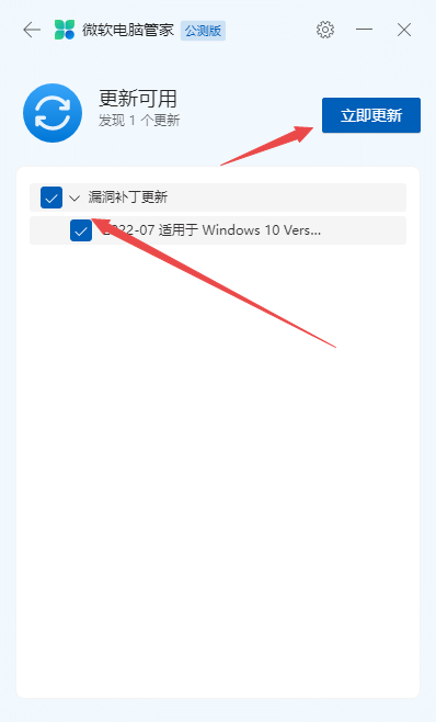 第四步,最后,等检查完成后,我们勾选想要更新的漏洞补丁,然后点击右上角的【立即更新】按钮,即可进行Windows系统补丁的更新了。