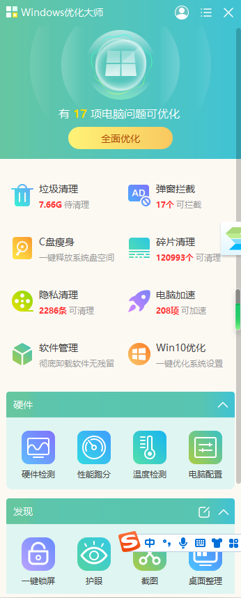 隐私清理可以清理电脑的隐私记录,包括上网、娱乐、下载、软件等操作记录,保护你的隐私。电脑加速可以提高电脑的开机速度,使得开机更快速。软件管理可以轻松地管理电脑中的软件,系统优化功能则可以解决系统出现的一些问题,使得系统运行更加稳定流畅。