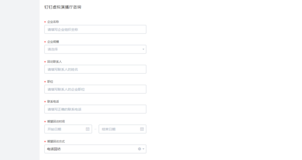 3、之后,会弹出【虚拟演播厅咨询】页面,我们按要求填写正确的信息后点击提交即可。