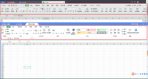 首先,在软件设计方面,WPS顶部的工具栏部分,设计的比永中Office看起来更加的明显、直观,整体布局感觉也更美观一些。