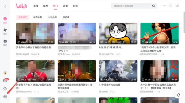 1.启动电脑版哔哩哔哩软件,然后找到左侧列表最底部的小齿轮也就是【设置】图标,点击它。