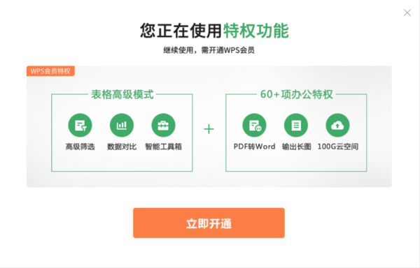 2、WPS高级功能需要付费,但费用总的来说要比Office更优惠一些,不过两款软件的数据处理上限还是有区别的,小编在上文说过了。