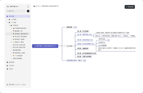 而幕布笔记支持一键生成思维导图,并且还可以在笔记和导图模式间进行切换,使得笔记和导图书写的更加有层次、有条理。同时,幕布笔记还自带层级结构,能够预先为用户设置好层次结构,免去了用户自己去标注不同层次问题的麻烦。