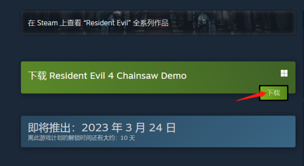 2、接着,我们来到生化危机4重置版的游戏详情界面,可以看到【下载resident?evil?4?chains?demo】的内容,在此我们即可直接下载安装生化危机4重置版demo。