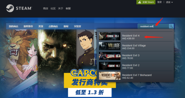 1、在Steam的搜索栏中,我们可以输入【resident?evil?4】找到生化危机4重置版游戏。