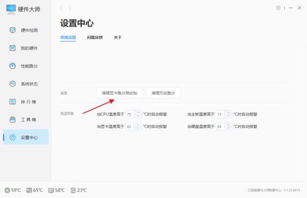 ②然后找到右侧界面中的【清理显卡跑分测试包】按钮,点击它。