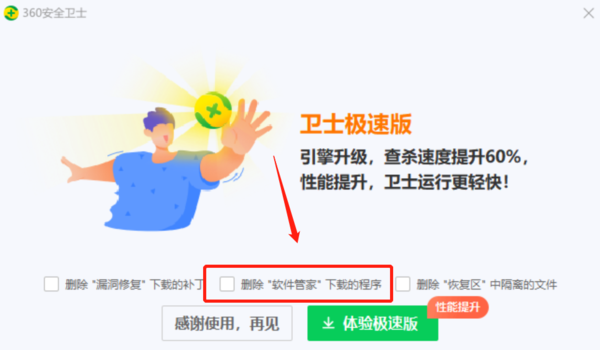 小编在卸载360安全卫士时,发现在卸载界面有一个选项【删除“软件管家”下载的程序】。
