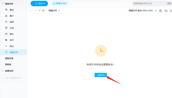 4、接着我们就可以在百度网盘隐藏空间中存文件了。