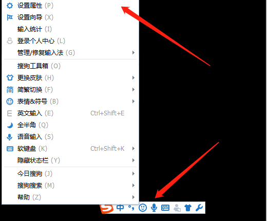 我们右键单击【搜狗输入法】窗口,找到【属性设置】;