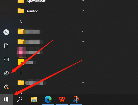 我们打开电脑的【菜单】,点击左侧的【齿轮】设置符号;
