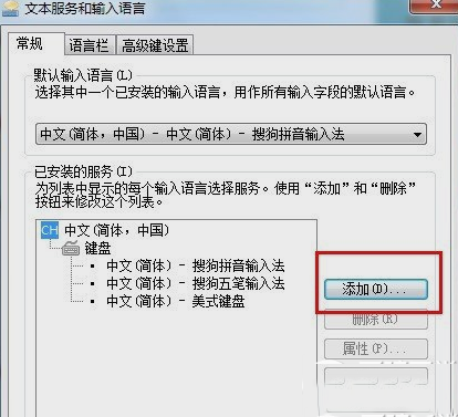 方法一:点击任务栏上的【语言图标】,打开【文本服务和输入语言】的窗口,在【常规】一栏点击【添加】,来将搜狗输入法添加至键盘中。