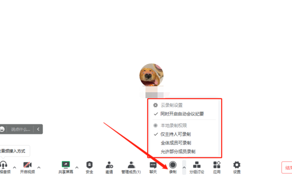 但是想要看会议回放,我们就要用到【录制】的功能,录制功能的权限不是每个人都有的,这要看会议组织者如何设置才可以,有了权限才可以全程录制会议。