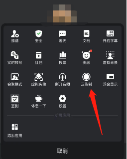 手机端中的操作方法与电脑端大致相同,主持人在参会时,在屏幕下方点击【更多】,找到【云录制】即可录制会议回放了。
