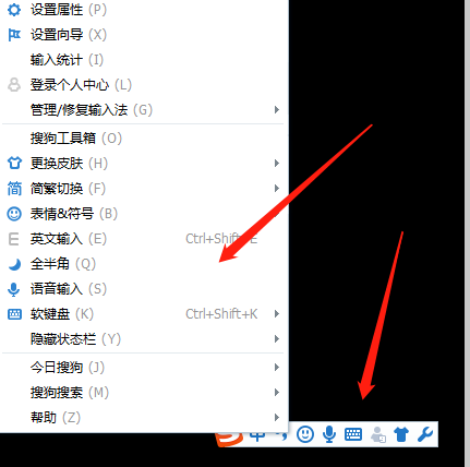 我们按下【ctrl+shift】将搜狗输入法窗口调出来,右键单击窗口,即可看到【全半角】选项,单击切换,月亮形状为半角,圆形为全角。