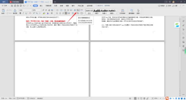 ①打开需要删除空白页的wps文档,然后找到软件工具栏顶部【开始】菜单中的【显示/隐藏编辑标记】功能,点击它。