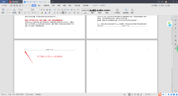 ④最后,按下键盘上的【Delete】删除键,即可将最后一页多余的空白页删除掉了。