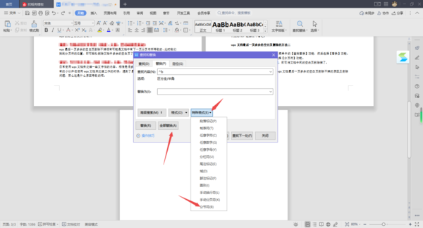 ②然后,点击【特殊格式】选项,选择【分页符】功能。