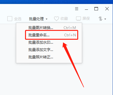 第二步:在批量处理的下拉界面中,选择“批量重命名”。