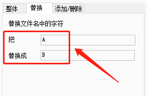 第三步:输入被替换的字符,以及需要替换成的字符。这里小编选择的是把“A”换成“B”。
