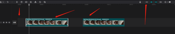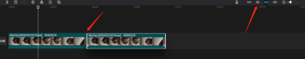 且大家也不难发现,当我们调整两段相邻的视频素材时,当两段素材相距较近时,也会自动吸附在一起,这样的话,如果我们不想让两段视频连在一起,只是想相距较近的话就很难做到,其实操作方法也非常简单。