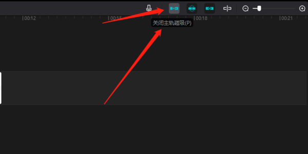 设置方法很简单,大家在视频轨道编辑上方那一栏的右侧找到【主轨磁吸】选项,若是蓝色则代表处于开启状态,我们点击一次将其关闭。