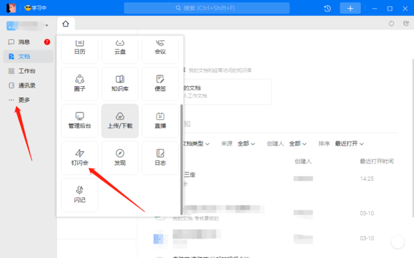 1、打开钉钉,在钉钉主界面点击左侧三个点中的【钉闪会】;